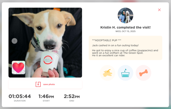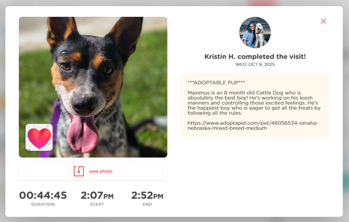 Now that the program is underway, she’s focused on enrolling foster families in PetPocketbook. Even if they’re not currently fostering, it helps her share weekly availability and avoid scheduling hiccups. Plus, each walk includes a personalized report card that gives fosters a glimpse into how their dog did, and often ends up getting shared in the rescue’s Facebook group. That kind of visibility can make all the difference for dogs waiting on the right match.